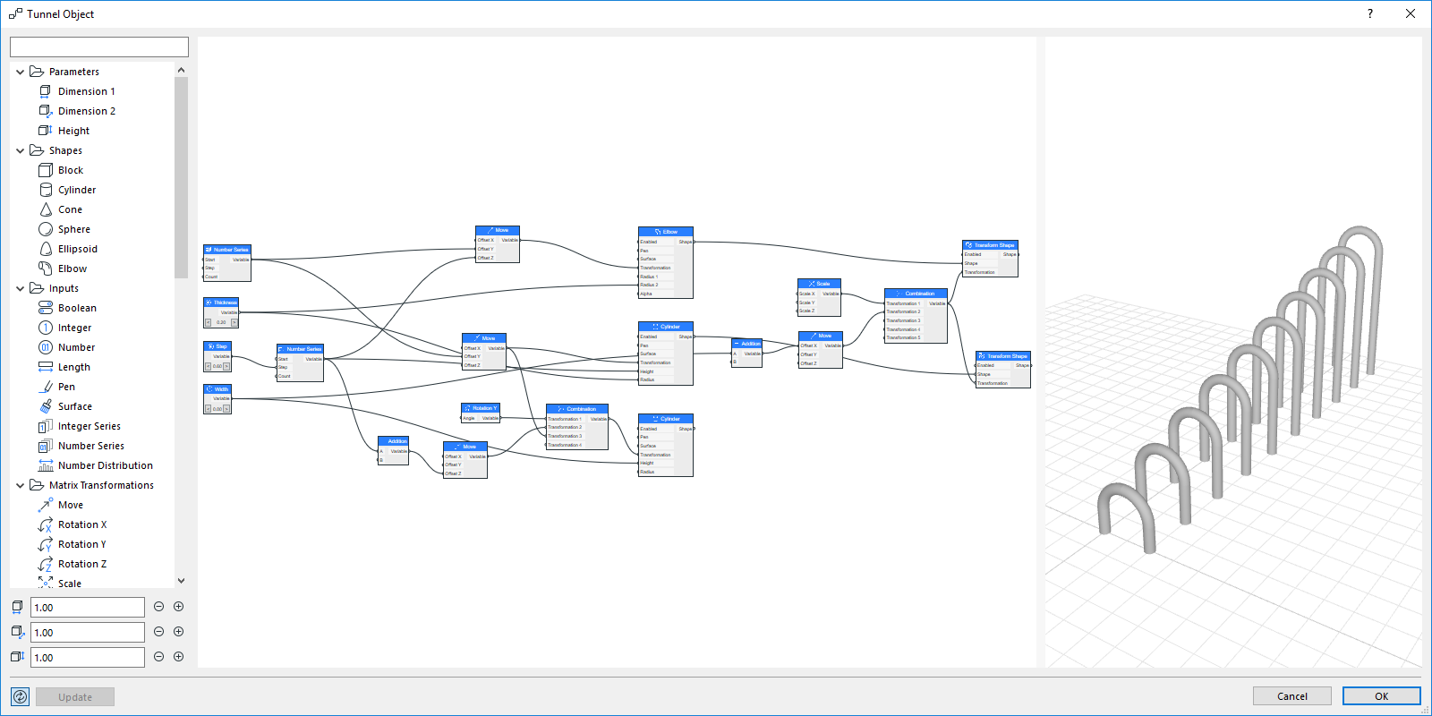 แต่เดิม การเขียน Parametric Object ใน ArchiCAD ต้องใช้ GDL ในการเขียน เป็นการทำงานแบบการเขียน Code เลย ซึ่งต้องอาศัยความเชียวชาญ ซึ่งตอนนี้ได้เปลี่ยนมาเป็นแบบ A node-based parametric แล้ว