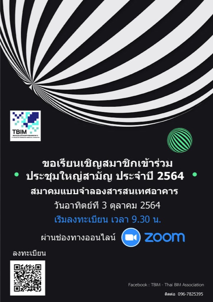 สมาคม TBIM จะมีการประชุมใหญ่สามัญประจำปี เพื่อร่วมแถลงแนวทางในการผลักดันเรื่อง BIM ในประเทศไทย ให้สมาชิกได้รับทราบ และร่วมแสดงความคิดเห็นครับ