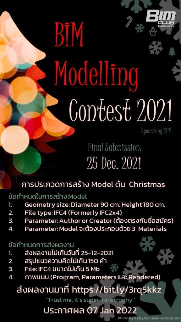 การประกวดแข่งขันการสร้าง BIM Model โดยในปีนี้ จะเป็นการสร้าง Christmas Tree Model ตามข้อกำหนด