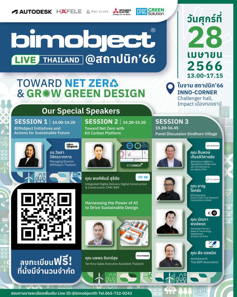 พร้อม Update Trend และเครื่องมือในการก่อสร้างใหม่ๆ ที่จะช่วยขับเคลื่อนให้อุตสาหกรรมการก่อสร้างไทยมุ่งสู่ Net Zero อย่างยั่งยืน กันกับงาน BIMobject Live 2023 Toward Net Zero & Grow Green Design